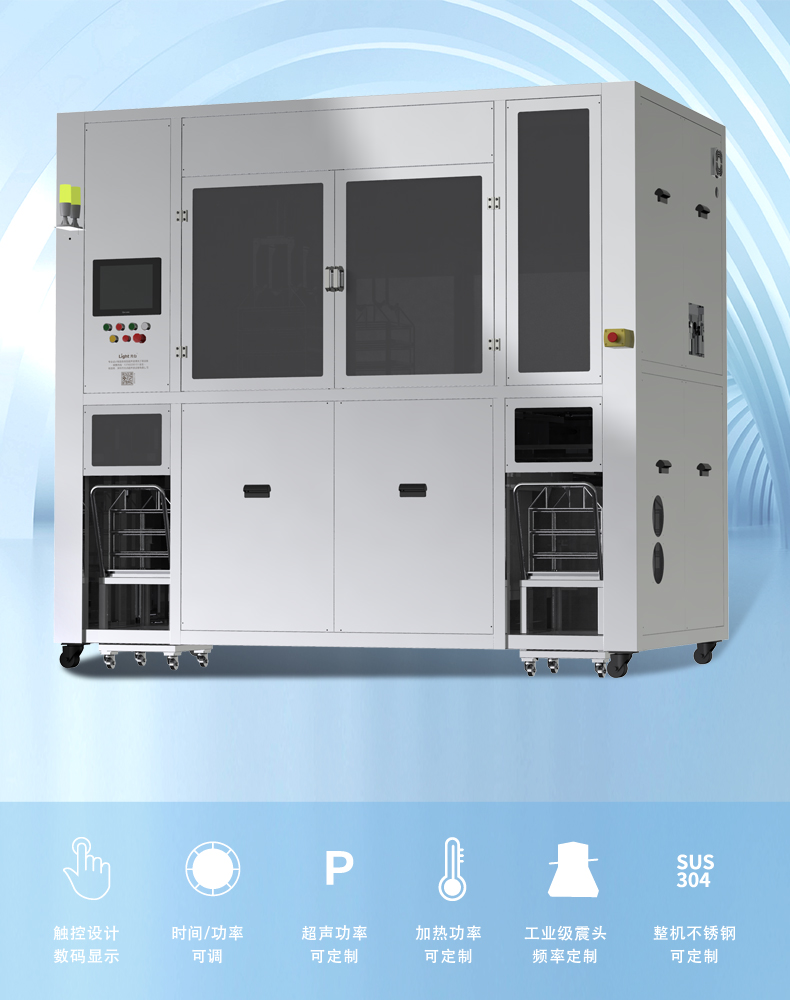 全自動超聲波清洗機主要應(yīng)用于半導(dǎo)體IGBT模塊料盒 COB/CMOS管加工后松香助焊劑殘留物水印等污垢清洗,廠家研發(fā)制造!有成功案例供參考!